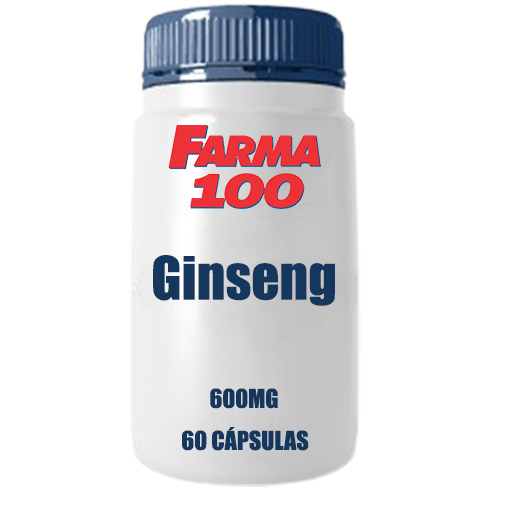 Ginseng 600mg em cápsulas, suplemento tradicionalmente utilizado, frasco com 60 cápsulas.