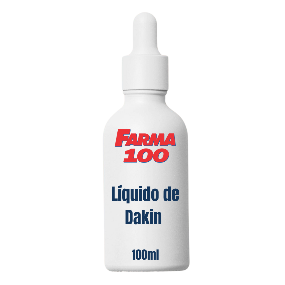 Líquido de Dakin em solução de uso externo, indicado para assepsia conforme orientação, frasco com 100ml.