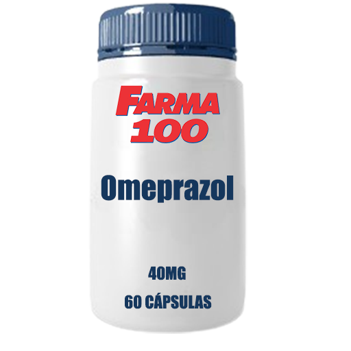 Omeprazol 40mg em cápsulas, medicamento de uso oral conforme prescrição médica, frasco com 60 cápsulas.