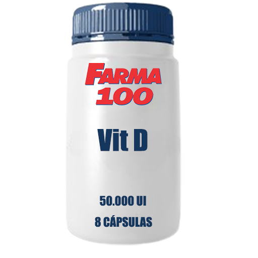Vitamina D 50.000 UI em cápsulas, suplemento vitamínico, frasco com 8 cápsulas.